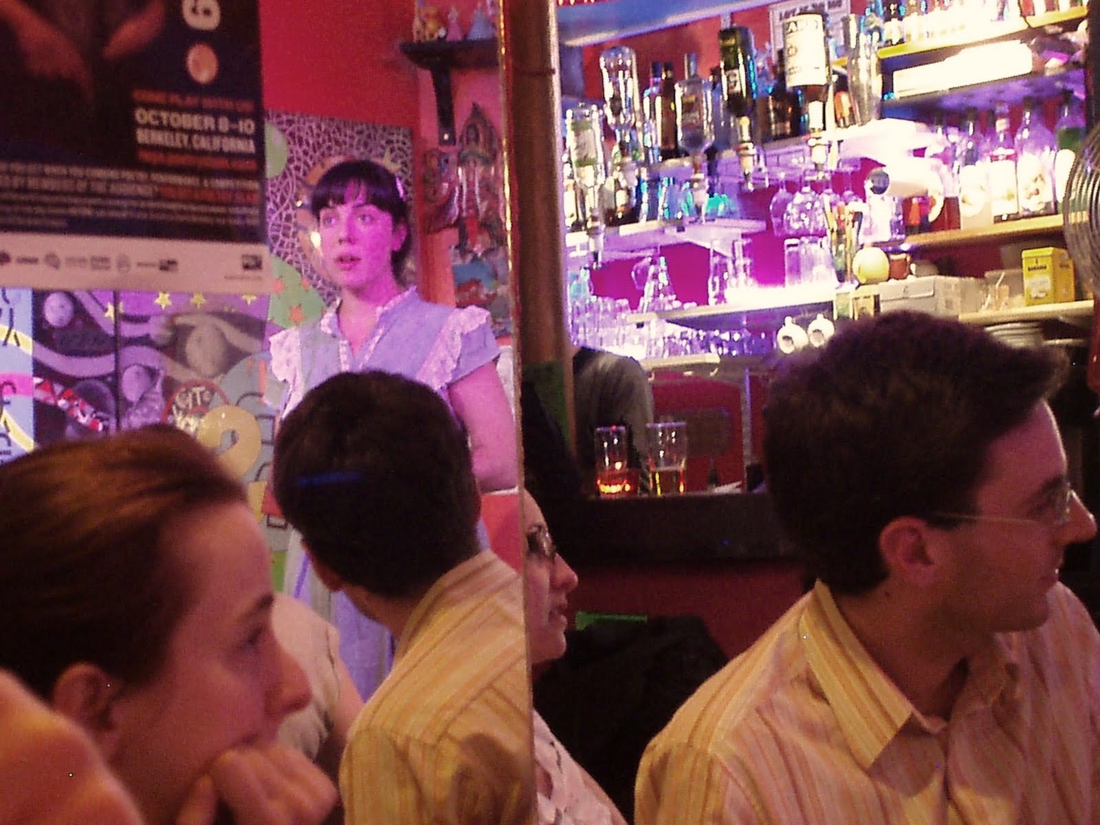 Other folks doing stuff included: Nicolas and his Magic Gloves, qui a fait disparaitre le Tour Eiffel. James, who missed mass on a Sunday. Charlie, who found a box full of zeroes. Lynne’s the politics of weather, endless rain rushing to Hell. Antonia – who rattles the brain while they put one breath after another and go off to war. English as she is spoke, with Marie & Nicolas. What is it you want you? You hear the birds gurgling? Chris’s play on love and unrequited slug. Suzanne: fromage feels so sad in the mouth, and smells like feet. Tom: Pound cake and other mysteries. Megan and Jonathan spiking drinks with illicit pills. Jason, easing his heartburn with a centrifuge… and many more esp old favourites.