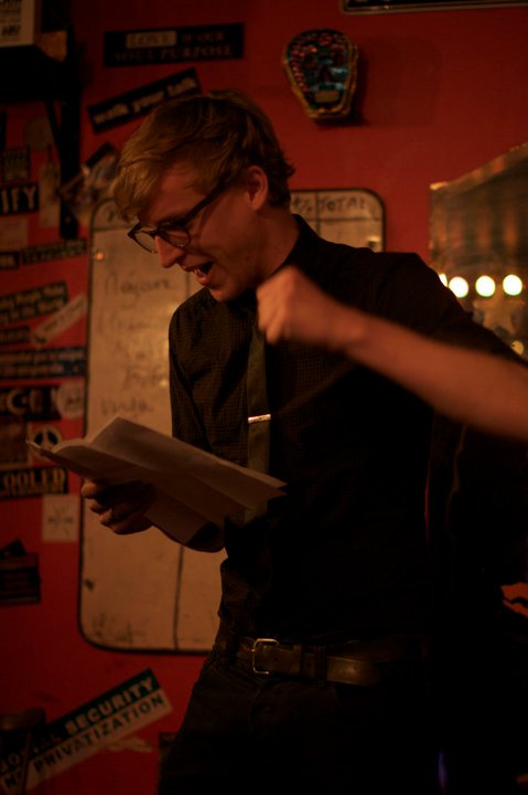An Iranian American slam-winning poet from NYC, with electrifying passion, on a kind of slam workshop world tour. Julien Field told of drinking in the Zorba with a decidedly insalubrious entourage, as somebody sprinted away into the night with his backpack. Troy was trying to trap the hunter to the sound of frogs barking. James spoke of sulphurous release where they fashion death in jackets. Chris, Georgina, Hal (pictured) and Patrick had Osama’s compound ”mapped out down to the last ass-crack… and we knew it was gonna get hairy! Americans can do whatever we set our minds to.”