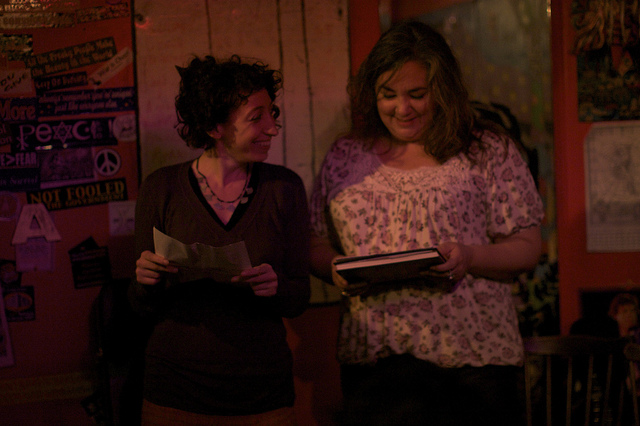 Finally Tyler doesn’t love us, but he likes us. He was lost in a cubicle maze, calling us on a bad connection. And Ashley organised a multi-author blind poem (Exiquisite Corpse?) to mark the week many of us are leaving FOREVER. Ok, not forever, hopefully you’ll still come back and visit. And we’ll always have facebook. “If I could climb you,” she read, “I’d tie your tired lashes together so we had a place to be.”