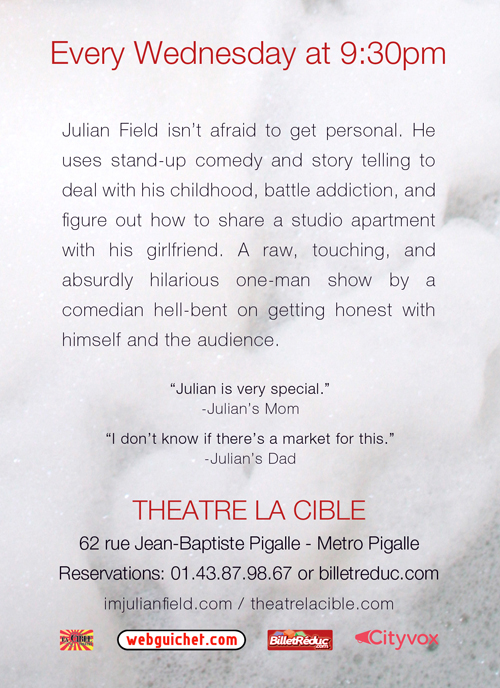 Every Wednesday at 9:30 PM (July and August) @ Theatre La Cible (62, rue Jean Baptiste Pigalle – Metro Pigalle)