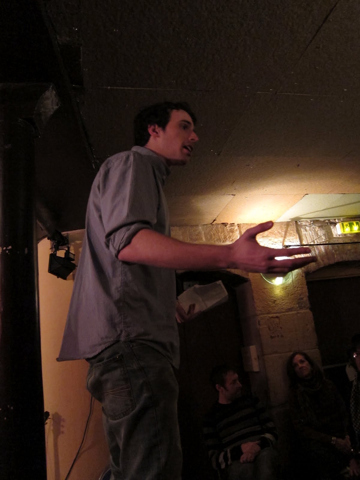 In Round II, Moe: “I masturbate 5 days a week, it’s a full time job.” Jason: “People should be paid for masturbate.” Troy: “Glued to the joystick”, Georgina: “Masturbatory fantasies.” Which was the theme of the night? “I lay like a carrot”. Beatrice: Erri De Luca and Cesare Pavese in translation. The great “I pensieri di Dina” from “Lavorare Stanca” (Hard Labor)1936. Marie Babie warming the Light Leaks up for the weekend. Gavroche: seeking to discover a more meaningful gold”. Katie “You left me in Jersey”, Betty’s collective performance: “You and Me and a thing called Chi? Chris Newens monologue:
