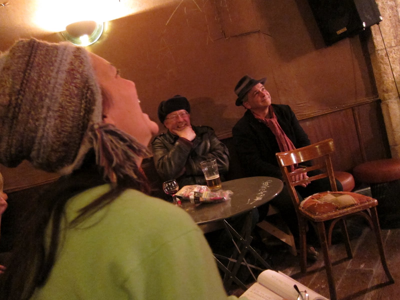 Welcome swingers, downstairs au Chat Noir, our weekly featured poet was Kerrie O’Brien, from Dublin, emerging talent of the 2011 International Yeats Poetry Competition, introducing her book Out of The Blueness, which you still buy on line if you weren’t there. Jeanne on the ambiguity of the word “baiser”, while meeting an italian stereotype called Max Massimiliano. Do you want to hear the whole story? Here. Theko played the loser song. If you want play it one more time. Luisa Claire Dunnigan: